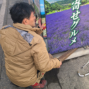 お客様のご要望を取り入れたラッピングシートを制作し、お客様だけのオリジナル自販機に仕上げていきます。